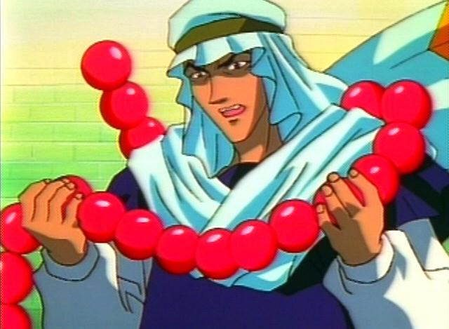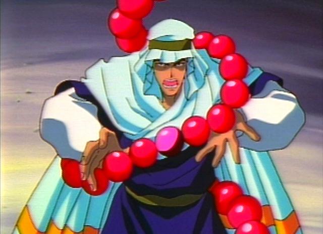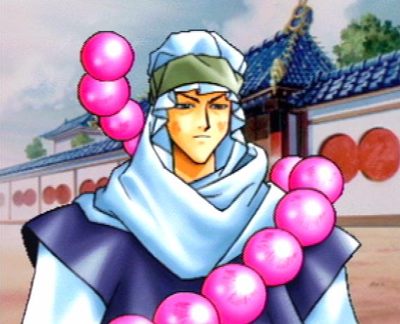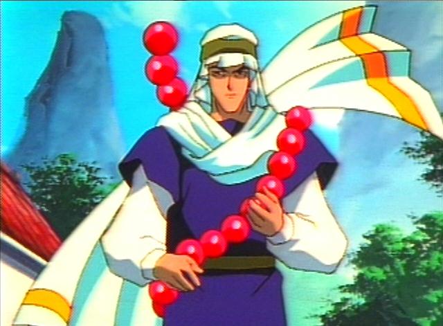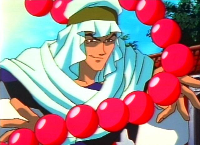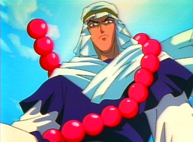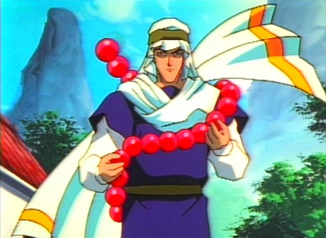 These are all images of one of Dakki's lackeys sent to capture Kou Hikou and the two young princes of In, Fuurin. He pretty much looks like a monk with his paopee. Yah, a monk....With giant red paopee prayer beads. Well, a desert monk, but yah. He also makes Nataku special. Because Nataku's paopee was the only one that could break his. ^-^