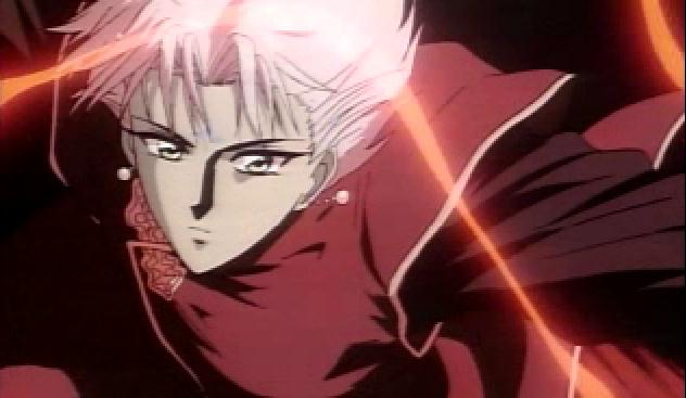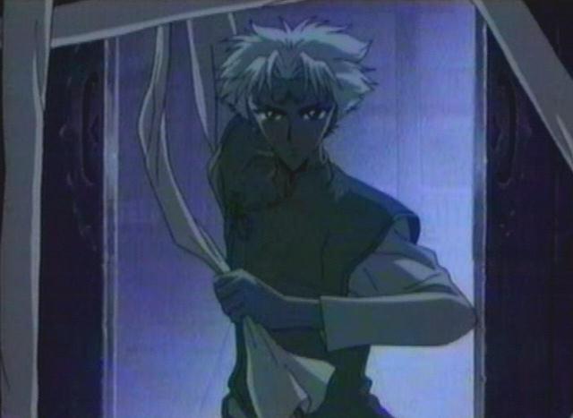Anyway, really, check out his appearance on the left though. The back of his hair's cut like our Nataku's, and the way his face is drawn is also, especially the eyes. The eyes have a lot more eyelashes, but y'know, that's CLAMP's style.
